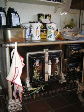 Besonders dekorativ sind die alten Küchenherde, die früher in vielen Haushalten Mittelpunkt der Küche waren.