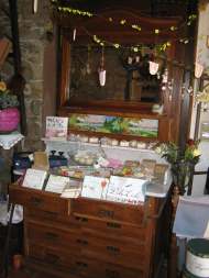 Und zwischen den vielen bunten Artikeln im Laden entdeckt man schöne alte Möbel aus massivem Holz: Schränke, Kommoden, Tische, und Kleinmöbel.