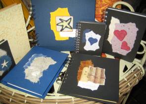 Notizbücher und Alben, dekoriert mit Applikationen aus geschöpftem Papier.